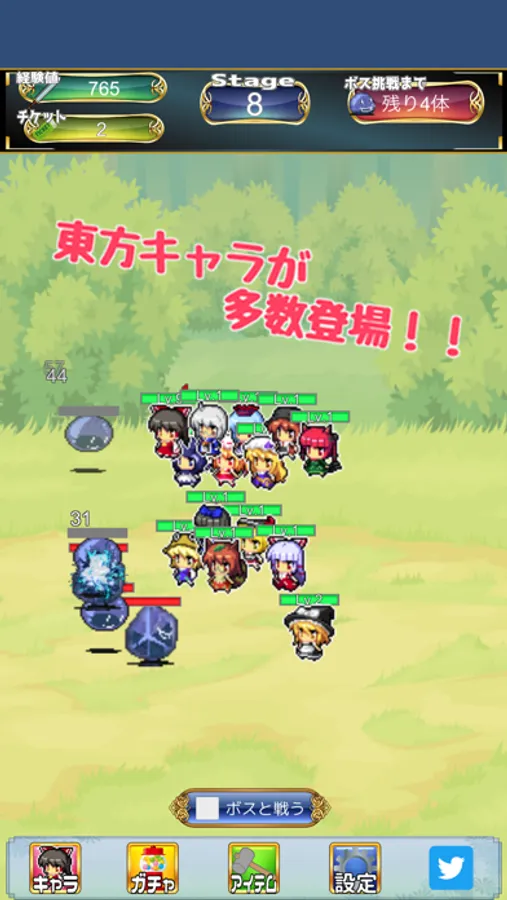 東方キャラが多数登場、無料ガチャでゲットしよう! オートで戦闘、タップで追加攻撃もできる放置系RPGです!!