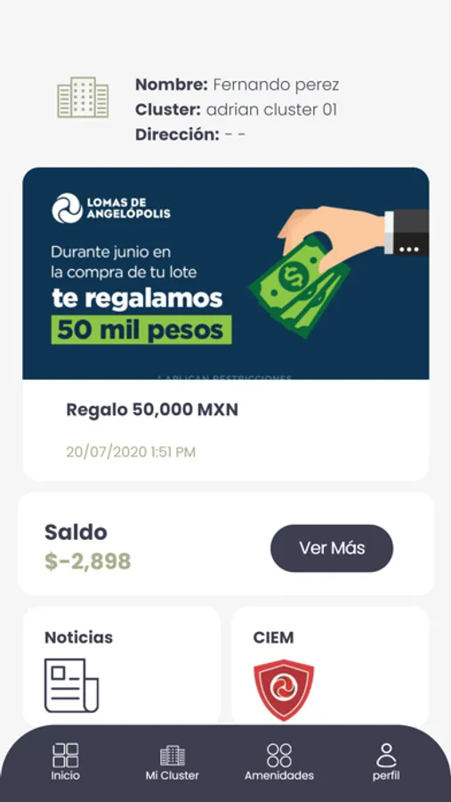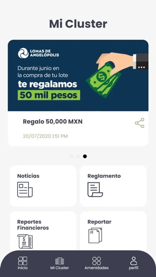 La app también te permitirá ingresar a un tablero de avisos por parte de los administradores, reservar amenidades o áreas comunes, reportar fallas, consultar los reportes del cluster y todo esto es multipropiedad.
