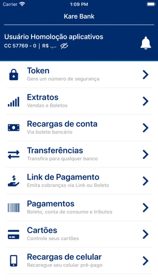 Nele você controla todo o seu financeiro, realiza transações bancárias, pagamentos, transferências, conferir seu saldo, recarregar seu celular e muitas outras operações em um só click.