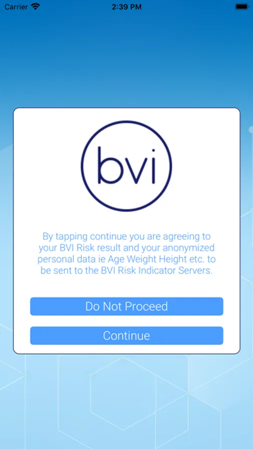 The BVI-Risk app requires a confidential identifying code to be sent to a user applying for insurance. The data is then securely stored alongside your other data provided to the insurance company during the course of their assessment when providing you with a quotation on insurance.