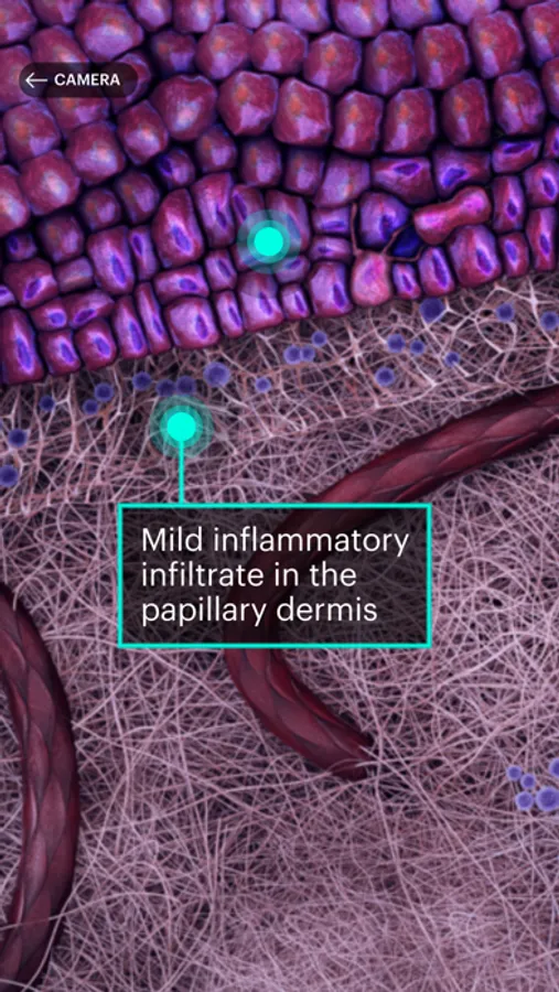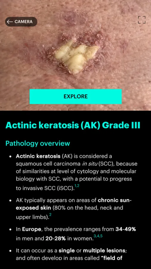 The App will explain to the user the scanned lesions with text, example images or a histological section (where available) and all the content is in English.