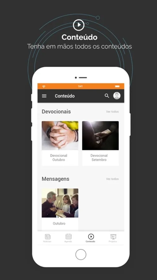 Notícias, Eventos, Conteúdos, Projetos, Transmissão ao Vivo e Módulo Ensino