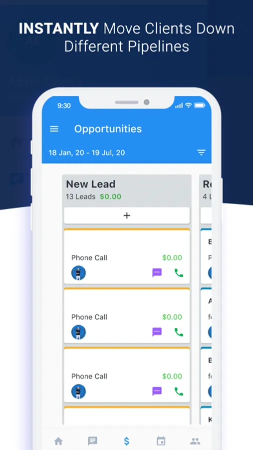 Move opportunities by easily swiping prospects down different stages in the pipeline.