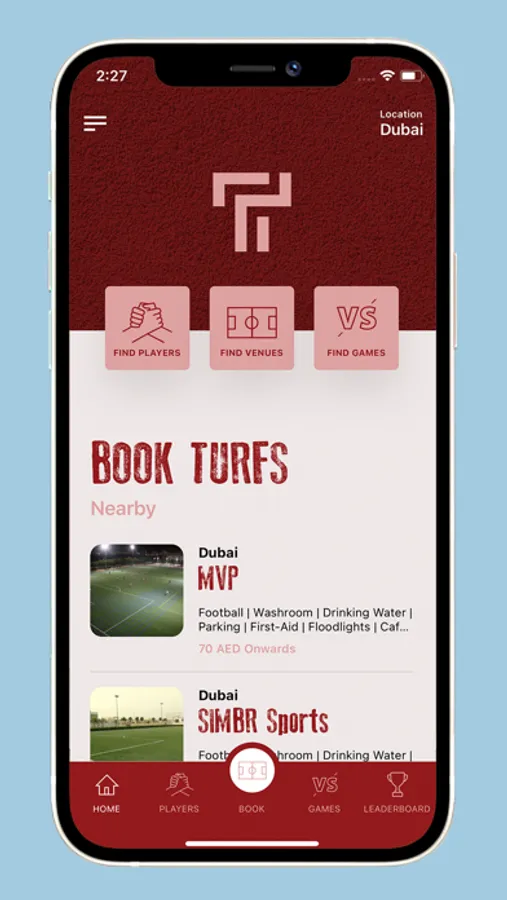 TURF is the go-to app for athletes and hobbyists looking to book & play their sport. Bringing the community of athletes in the UAE to a single platform to book courts, join games, find players, and track their performance.