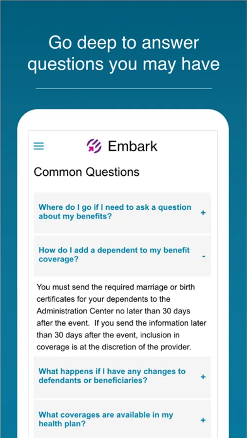 Embark puts everything in one place so you can stop jumping from website to website. Start on your personalized path to the benefits information that matters most to you and gives you the most from your employment experience.