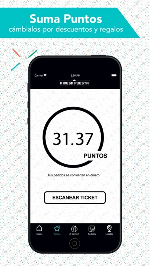 ¡Regístrate y disfruta de la buena comida y la bebida como nunca! A Mesa Puesta reúne los restaurantes favoritos de la zona en tu móvil, para ofrecerte una experiencia única con la que conseguir puntos y descuentos en tus pedidos de comida a domicilio y con cada visita a sus restaurantes adheridos.
