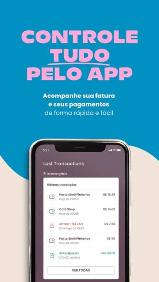 Controle total pelo app - é a evolução do cartão de crédito. Tá tudo no app, e você controla tudo por lá;