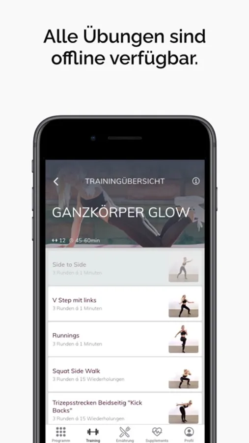 In diesen 12 Wochen kannst du jede Woche aufs Neue entscheiden, ob du 2-, 3- oder 4-Mal die Woche trainieren möchtest. Dein Programm: Einfache Schritt für Schritt Workout-Anleitungen und individuelle Trainingspläne auf deinen Bedürfnissen abgestimmt – so bleibst Du motiviert und erzielst durch die unzähligen Übungsvariationen von Cardio, über HIIT bis hin zu Mobilty mit und ohne Minibänder schnelle Ergebnisse.
