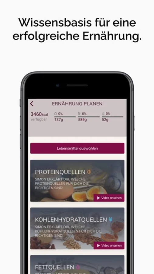 Anhand deiner eingegebenen Daten wird errechnet, wie hoch dein täglicher Bedarf an Makronährstoffen wie Fetten, Eiweißen und Kohlenhydraten ist. So wirst du dein Trainingsziel abzunehmen, Fett zu reduzieren, Muskeln aufzubauen und oder deinen Körper zu straffen wirklich erreichen. Simon erzählt dir ganz genau, wie du deinen täglichen Bedarf mit einer ausgewogener Ernährung decken kannst und dein Ziel, ohne zu hungern mit vielen gesunden Lebensmitteln und einfachen Rezepten erreichst.