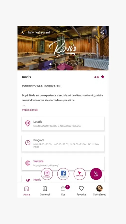 La fel ca si tine, iubim mâncarea de calitate si diversitatea. Acesta a fost si principiul pe care am construit meniul Rovi's. Te invitam sa descoperi gusturi unice, arome imbiatoare si retete gândite pentru a-ti incanta papilele gustative.