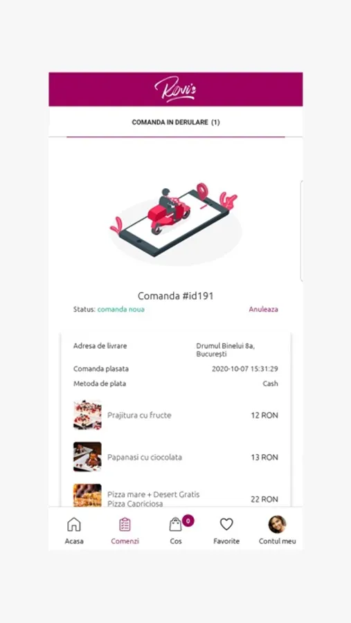 - posibilitati multiple de achitare a comenzii (plata cu cardul, cash, salvarea cardului in cont pentru plati viitore)