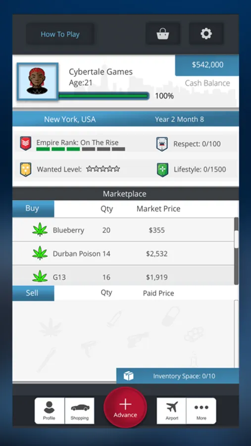 Begin your journey as a weed dealer by making as much money as possible. Buy and sell dope to earn big profits with stock market trading elements.