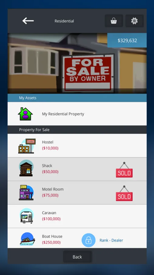 Purchase residential properties to expand your inventory space and improve your criminal and mafia empire.