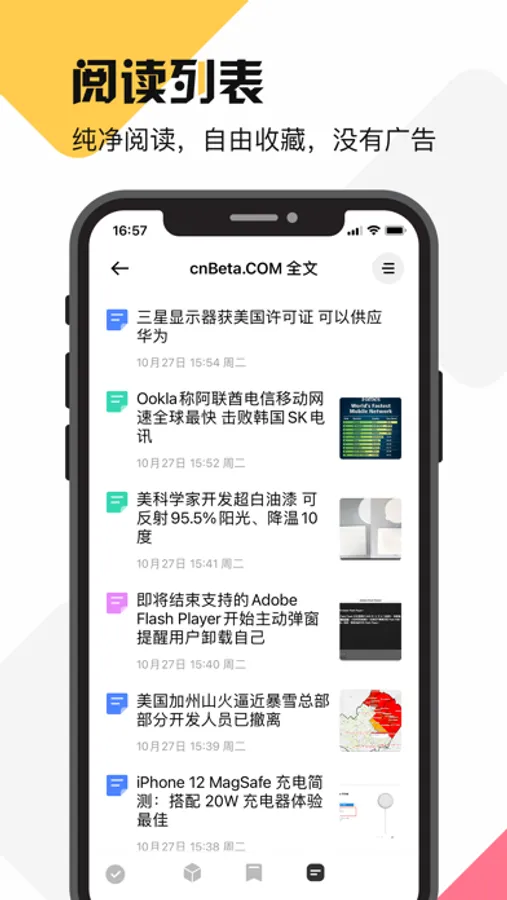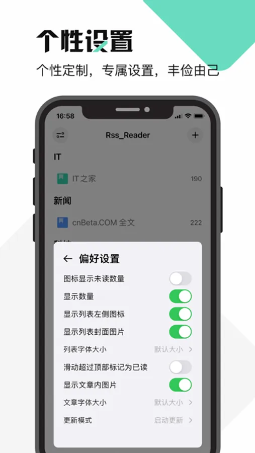 一个简洁的RSS阅读器,等待你去发现。你可以搜索到喜欢的源并订阅它。