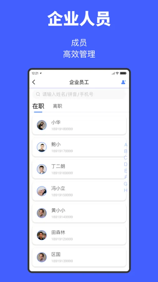 2、企业管理:支持企业员工及项目工人信息查看及权限管理