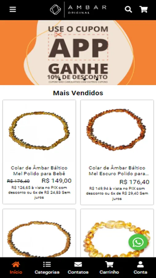 - Navegue pelas categorias e encontre o seu Âmbar Original favorito! Acompanhe seus pedidos no seu Perfil e monitore o status das suas compras sempre que quiser.