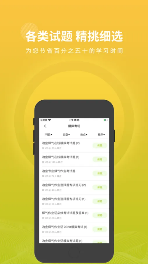 冶金煤气作业题库APP是一款针对冶金煤气作业考试的题库,涵盖了该考试热点、难点和常考点的考试模拟题库,是您学习和拿高分的好帮手。