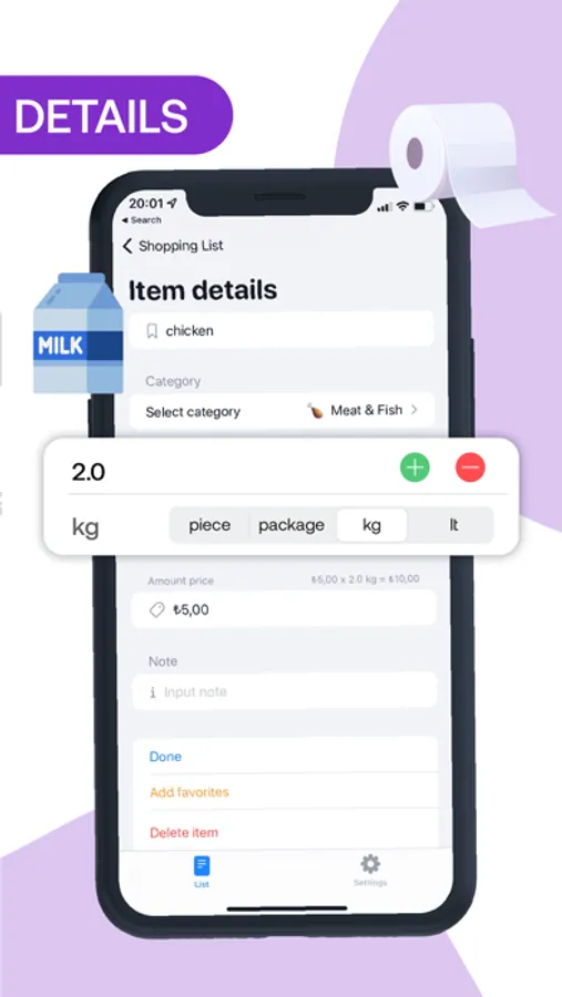 • You can also write the price of the products you add to your list and set the budget of your list.