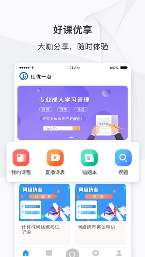 仕优一点在手,天下我有,在线学、练、搜,精准高效,便捷省力。