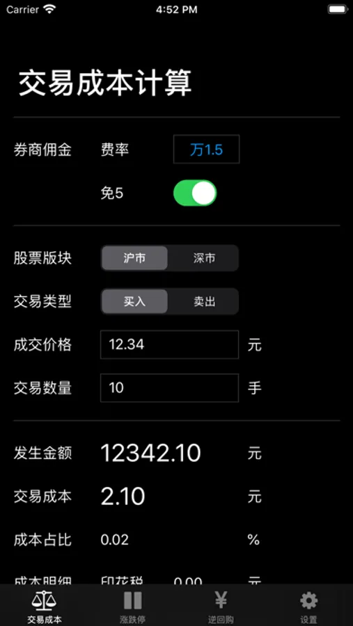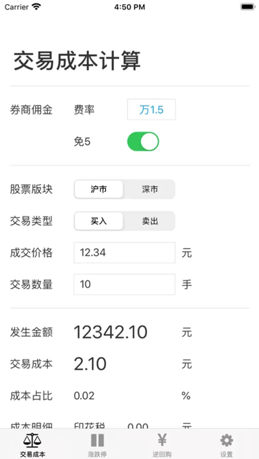 交易成绩计算是比较复杂的,上交所和深交所不同,买入和卖出也不同。使用炒股计算器,您只需要点几下屏幕即可算出实际的额交易成本,非常方便;
