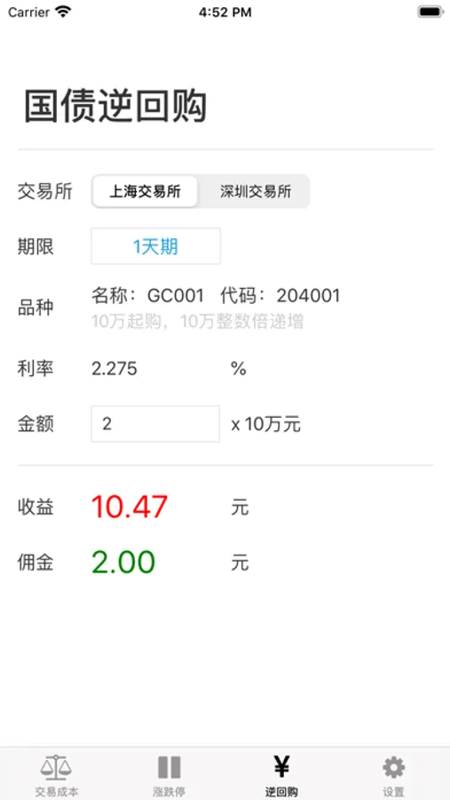 国债逆回购是股市中重要的无风险投资标的,但是如何计算逆回购的收益,却是一个很麻烦的事情,不同的周期,上交所和深交所的计算方法也都不同,使用炒股计算器就方便多了。