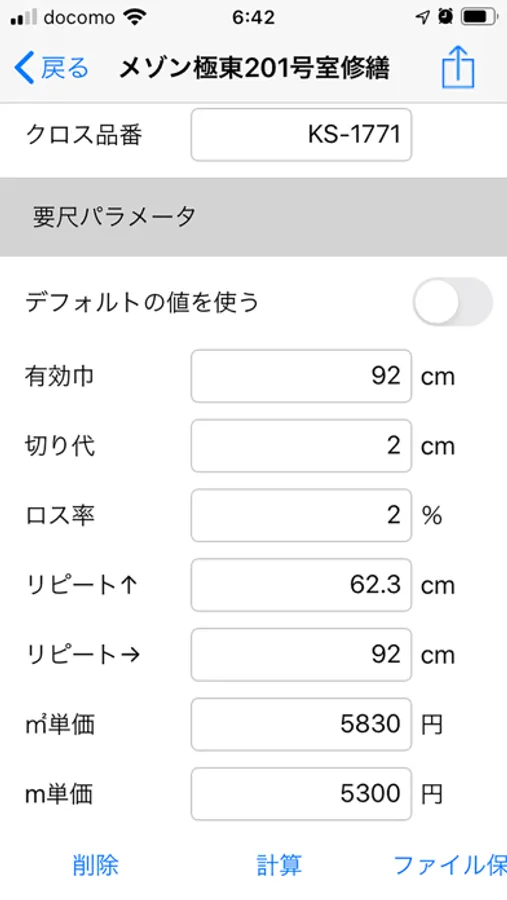 ・合計欄をタップすると、要尺値や概算金額を切り替えて表示することができます。