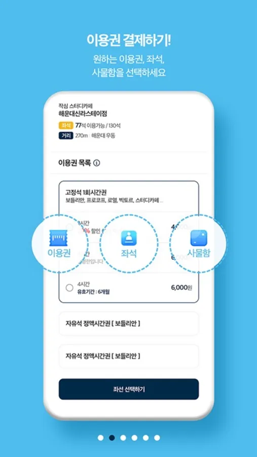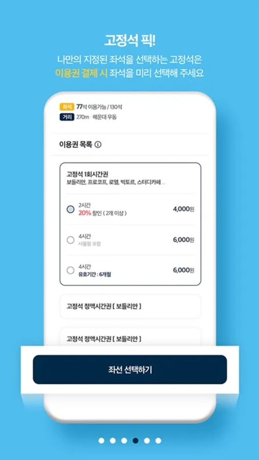 공부에 필요한 좌석과 교육 서비스를 손쉽게 선택하고 이용하세요!