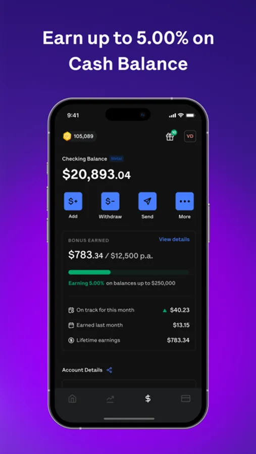 1. Earn 5% on cash deposits up to $50,000 and 4% up to $250,000.