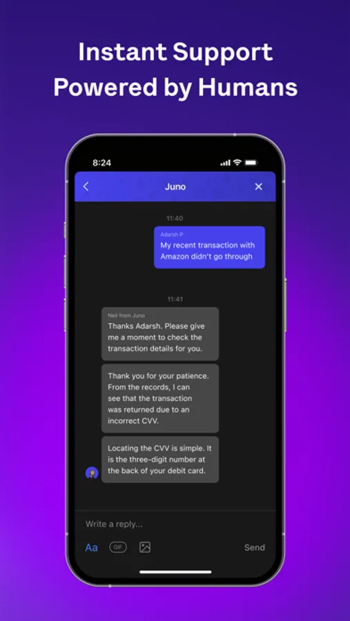 7. Apple Pay, Google Pay, and Samsung Pay: Connect your Juno Debit card and start using Apple Pay, Google Pay, and Samsung Pay instantly.