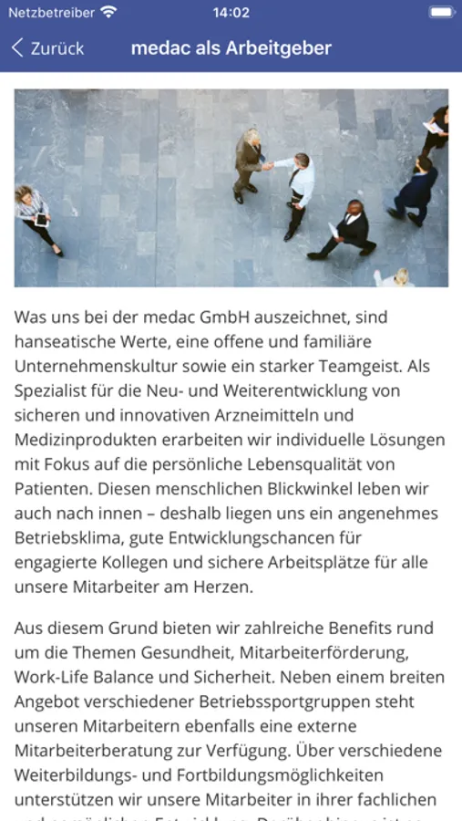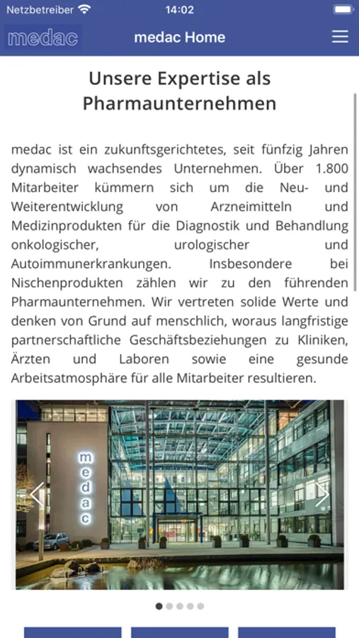 The one medac app offers both interested parties and applicants an insight into the business activities of the globally active pharmaceutical company medac located in Wedel, Germany.