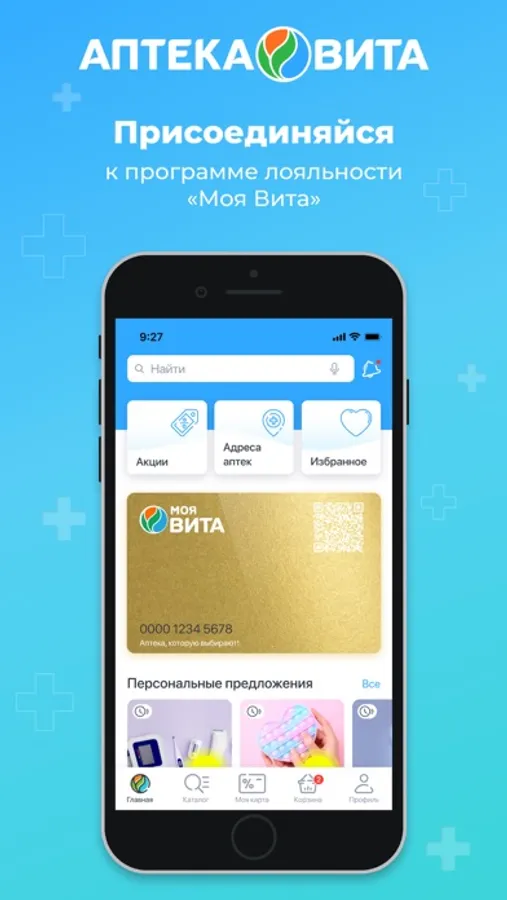 1. Установите бесплатно мобильное приложение аптеки и станьте участником программы лояльности «Моя Вита».