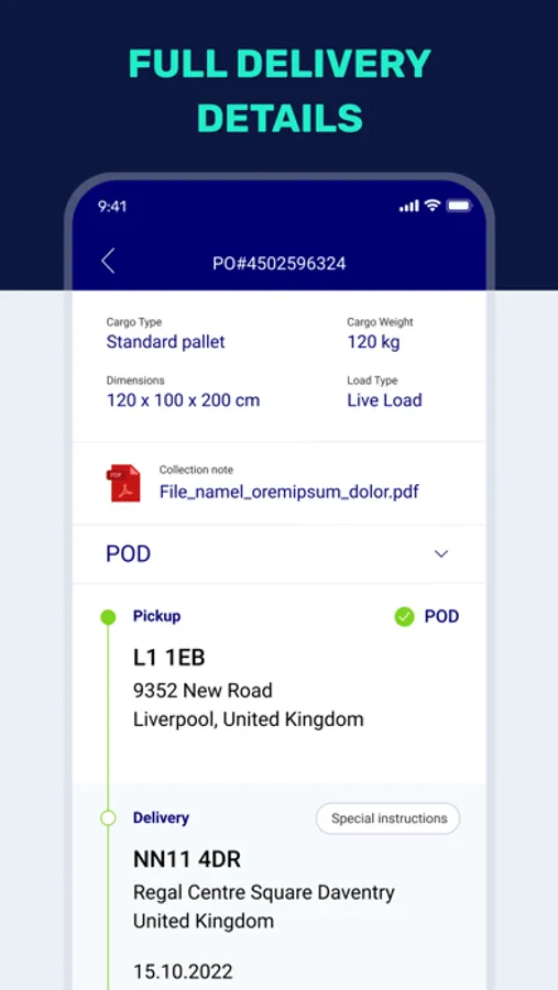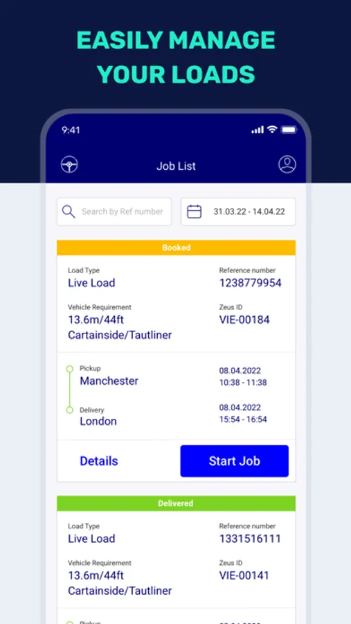 The Zeus Driver app is our free fleet management app that ensures hauliers can keep track of all their deliveries whilst on the road. GPS enabled, web-updated, the app gives you details of pickup location, full address details, cargo details, stay on top of your other drivers & vehicles, and an easy way to upload PODs (Proof of Deliveries) and get paid quickly!