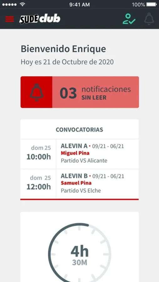 SUDEclub, es una Aplicación de comunicación adaptada a clubs deportivos, permite una comunicación directa entre los jugadores, familias, directiva, entrenadores y aficionados.