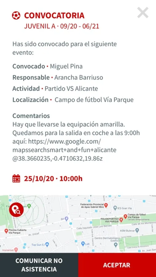 Se acabó el tener cientos de grupos de WhatsApp interminables ni el tener que añadir a las personas con su teléfono, ni depender de que los entrenadores manden el mensaje al grupo/equipo.