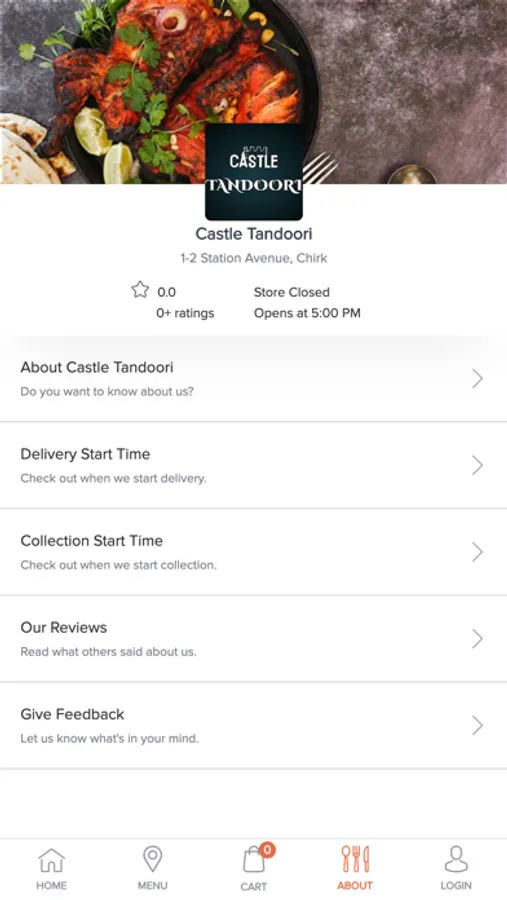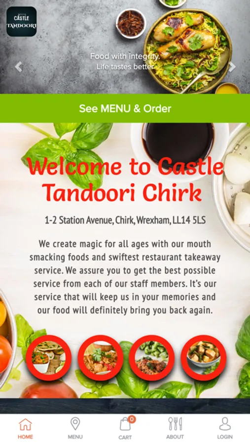 We're also available for ordering on https://castletandoori.com/storemenu and also on https://kuick.com/order/castle-tandoori-chirk