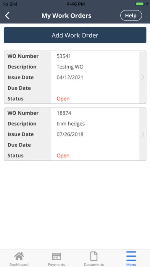 k. Submit work orders and check on status of their work orders (add comments and take pictures from mobile device)