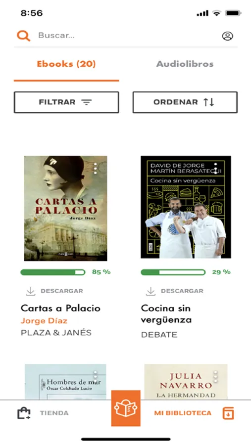 • Disfruta del diseño sencillo de tu biblioteca. Ordena y filtra tus ebooks y audiolibros a tu gusto.