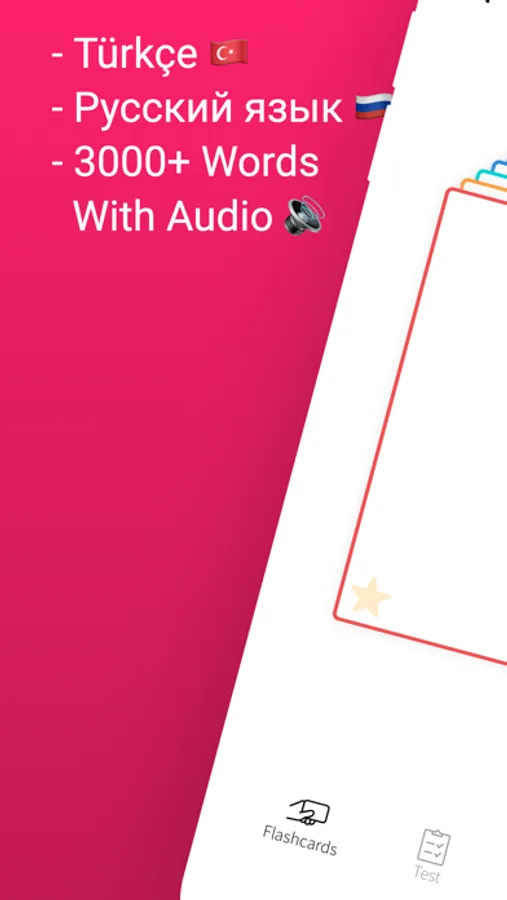 Expand your language skills with this app, the ultimate Turkish-Russian vocabulary learning app. Unlock the power of 3000 commonly used words through an immersive learning experience designed to boost your language proficiency. Whether you're a beginner or an advanced learner, our app offers three dynamic features to accelerate your progress: Flashcards, Word Tests, and the exciting Match Game. Start your language journey today and become a fluent communicator in both Turkish and Russian!"