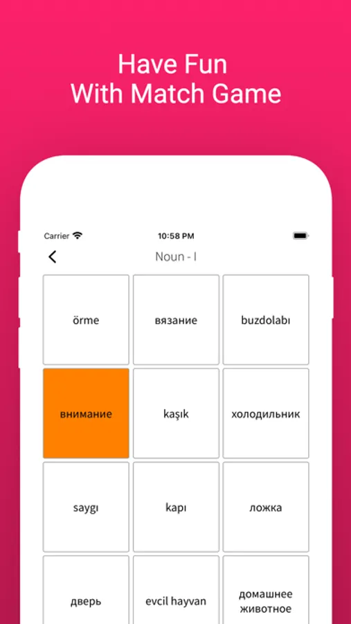 Match Game: Play an addictive matching game to strengthen your word recognition skills. Connect Turkish words with their Russian translations. Sharpen your memory while having fun!