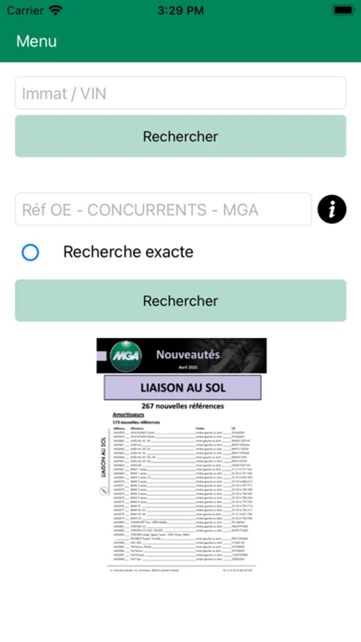 L'application MyMGAMobile vous permettra de choisir les pièces qui conviennent à votre véhicule à l'aide de votre plaque d'immatriculation.