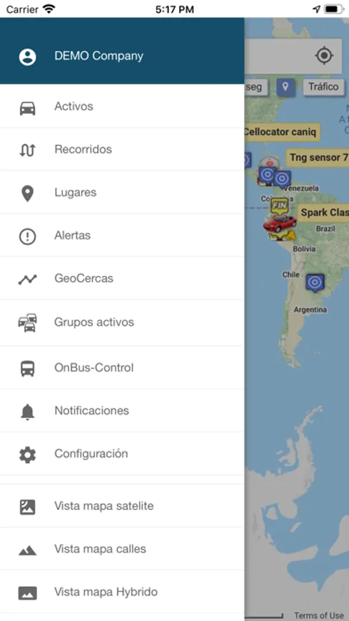 La aplicación móvil cumple con todas las características de un módulo GPS, tales como; seguimiento en tiempo real, nivel de combustible, apertura remota de puertas, creación de Geocercas, creación y recepción de alertas, historial de recorridos, paro de motor, envió de comandos, entre otras funciones.