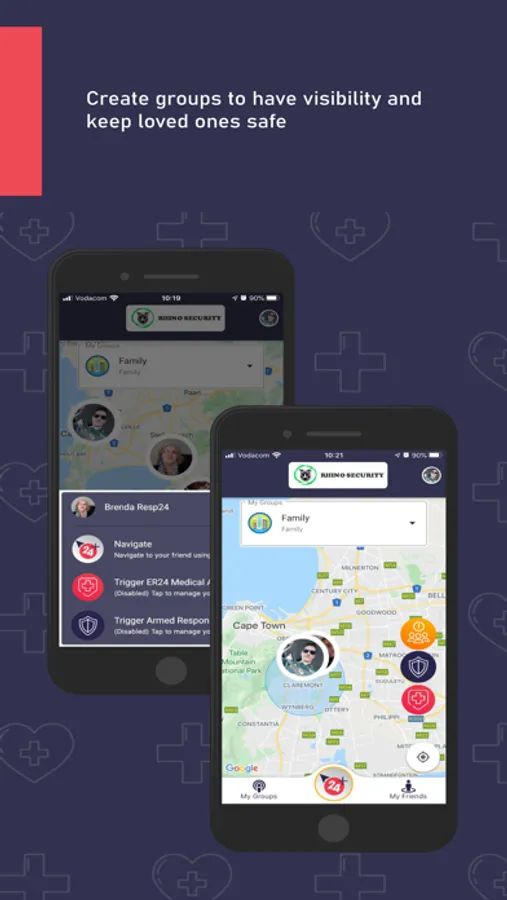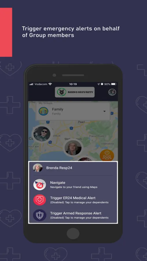 Trigger armed response and medical emergency alerts for yourself or any of Your Group
