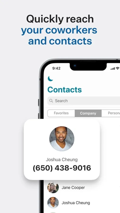 Search your company directory and easily connect to coworkers with internal peer to peer or group messaging (chat), three-way calls and extension dialing, allowing you connect to colleagues whenever you need to, from wherever you are.