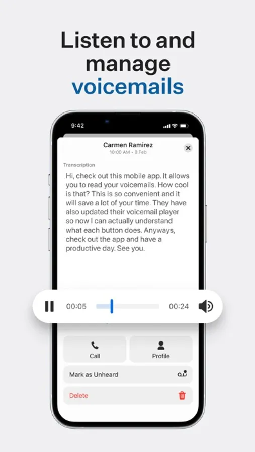 Check your voicemail from wherever you are right within the Unity Connect Softphone mobile app, view transcriptions for a quicker response. Access call recordings and faxes.