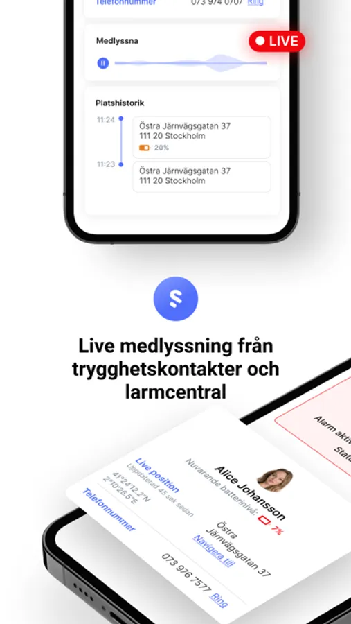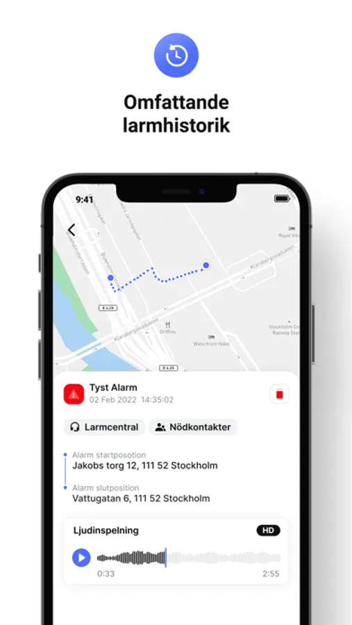 - Unlimited alarms to your emergency contacts with real-time location and audio