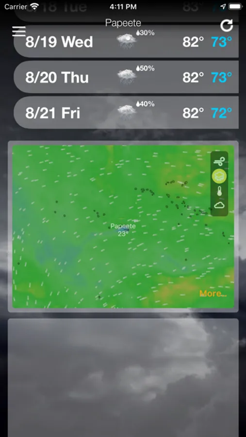 Real-time temperature, rain, snow, humidity, pressure, wind force and wind direction are all in this weather application based.