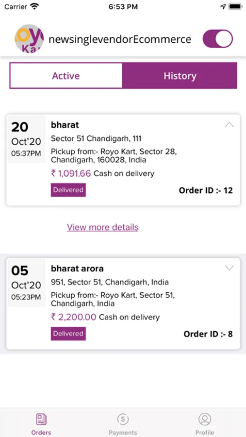 RoyoEcommerceSingleVendorAgent app allows Agents to manage and keep track of the orders made by customers on RoyoEcommerceSingleVendor app. App helps suppliers and users to deliver products to the doorstep. All the products when ordered from the user app will be sent to the nearby driver as well which and upon acceptance it the driver will be assigned to that particular order.