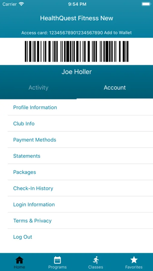 Download the app to view basic information about the facility, view and update profile information, store your membership scan card, view statements and check-in history, and search for programs and classes.