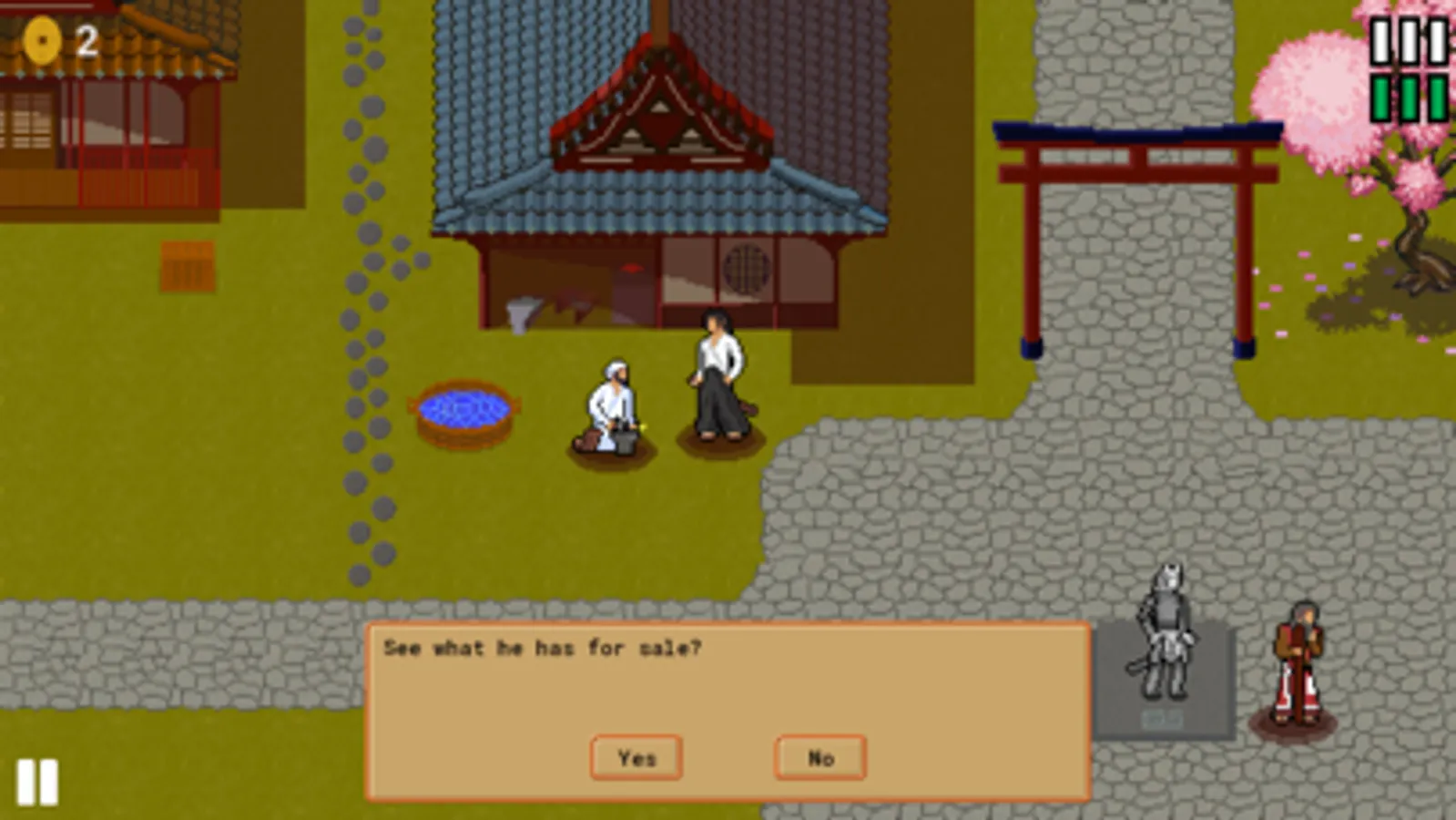 The townsfolk, though weary and defeated, will offer whatever assistance they can while you ascend the pagoda. Armed with only your wooden training sword, you must fight your way through an endless tide of demons to reach the top and confront their general. Be sure to stock up on valuable items from the town’s blacksmith and item merchant as each level is cleared.