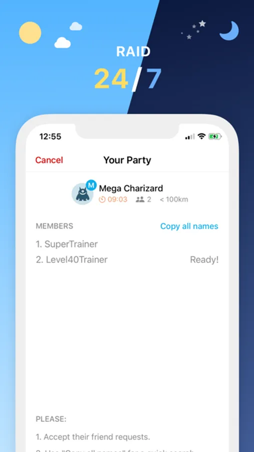 With GO Raid Party, we match people who need help with people who want to help, with a simple and easy to understand interface. This app is perfect for people who: